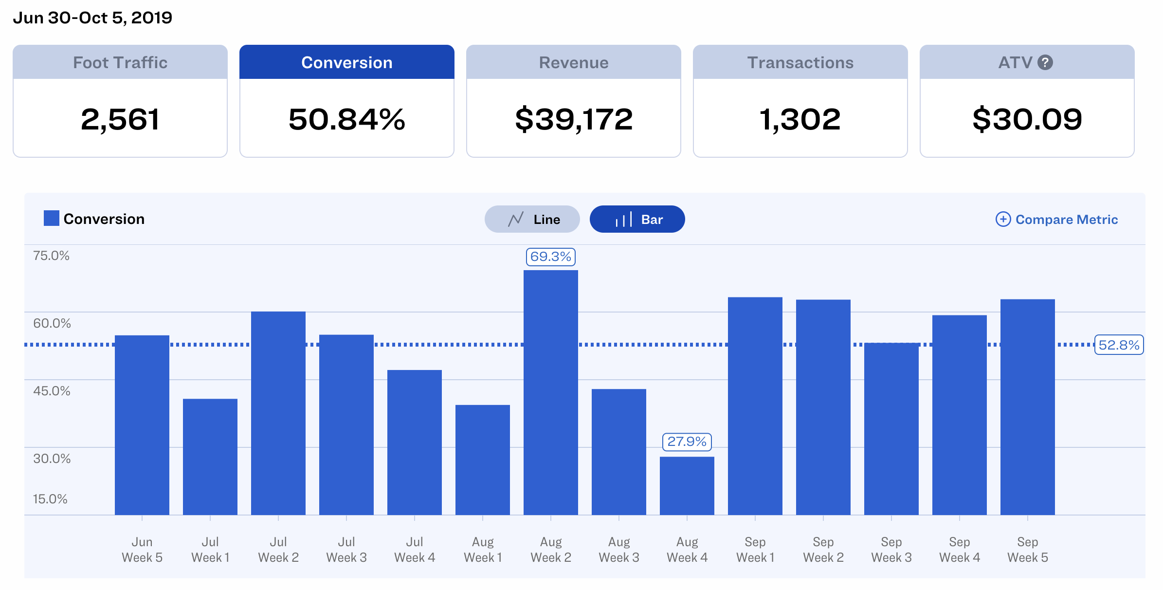 Foot traffic is a different animal. Reviewing weekly, monthly, or even yearly data can indicate upward or downward swings in your store’s business.